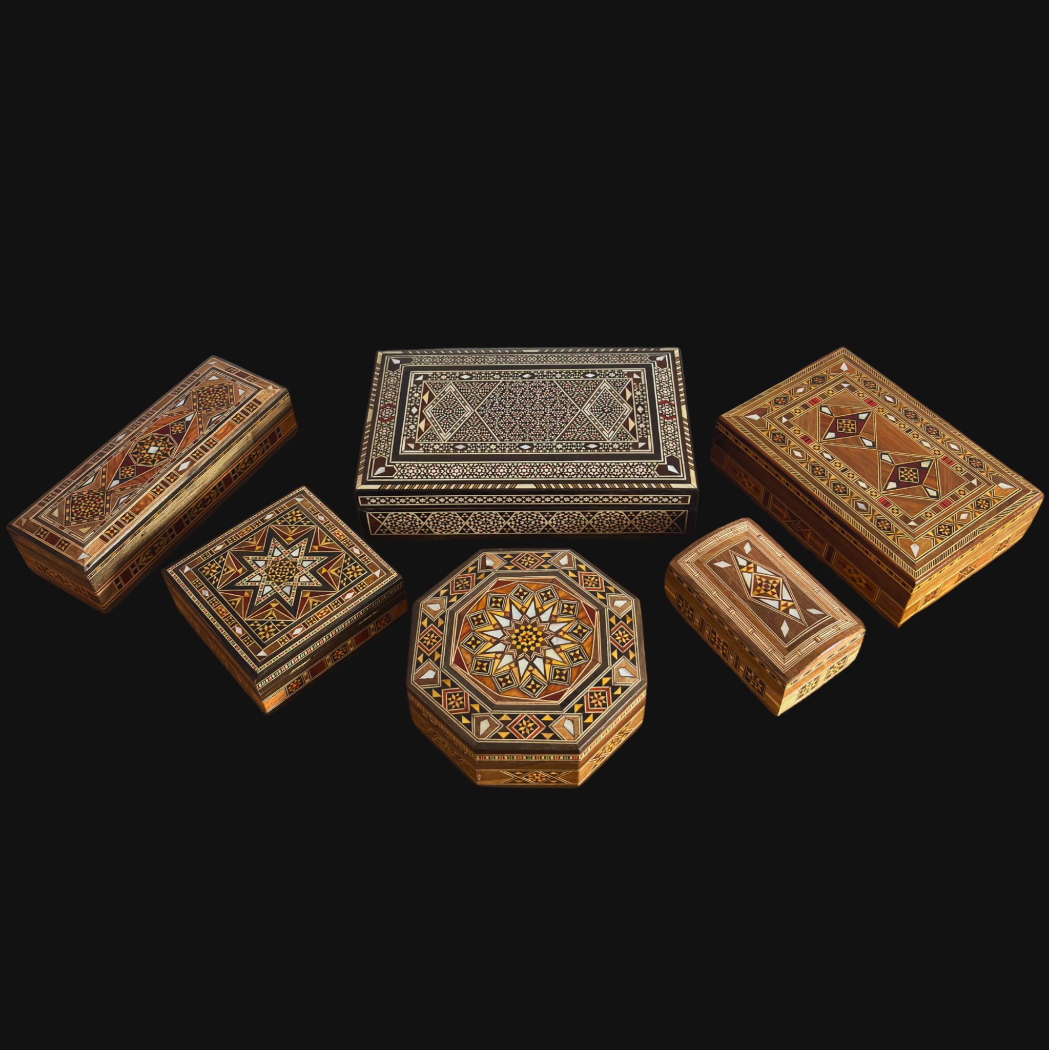 Każdy element opowiada historię dziedzictwa, precyzji i piękna — ręcznie wykonany przez syryjskich rzemieślników.